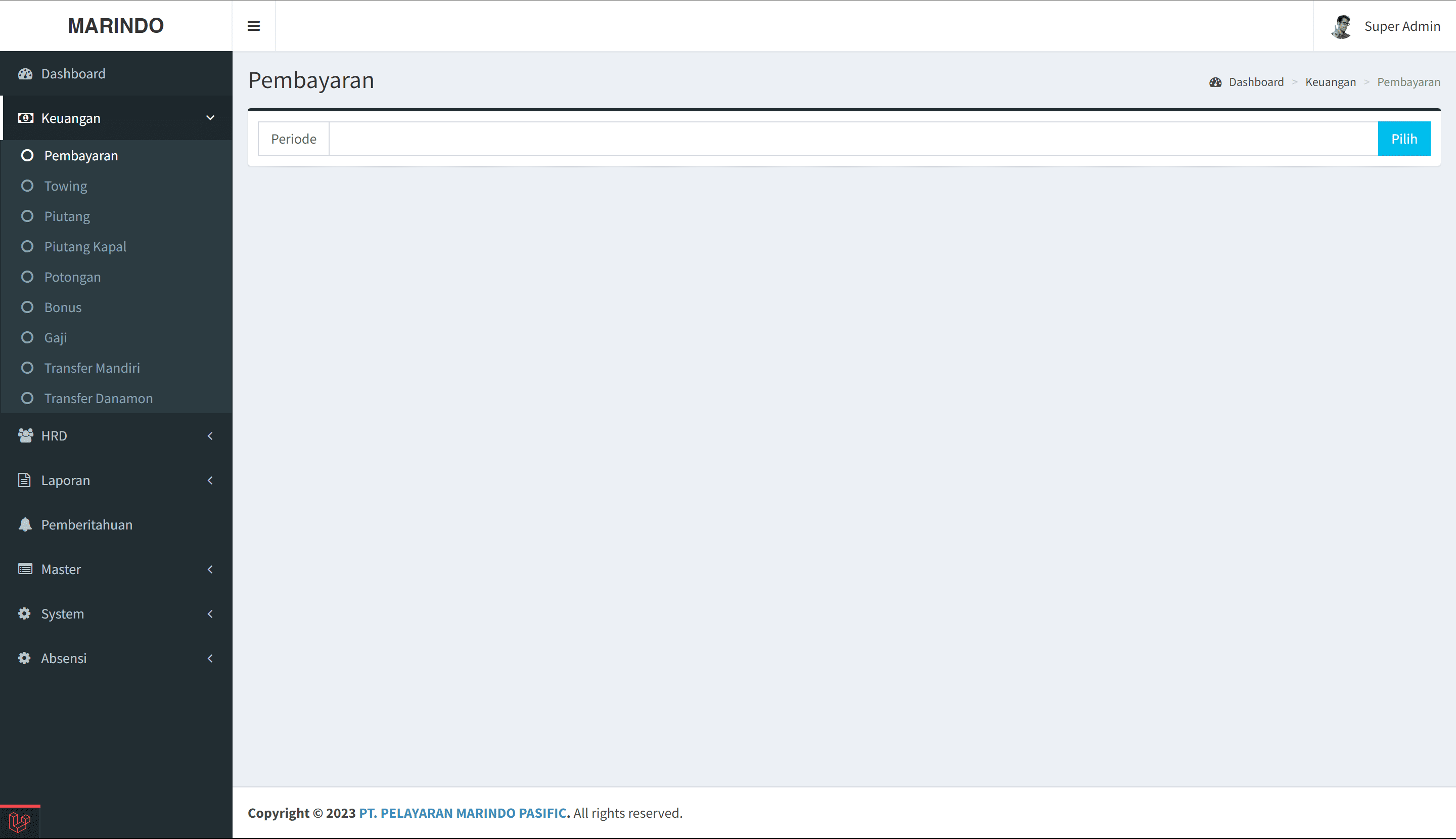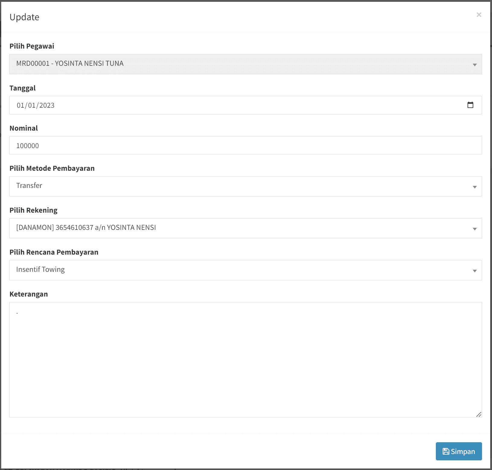 Setelah memilih periode pembayara, maka akan muncul Form Detail Pembayaran, Pada form ini admin bisa