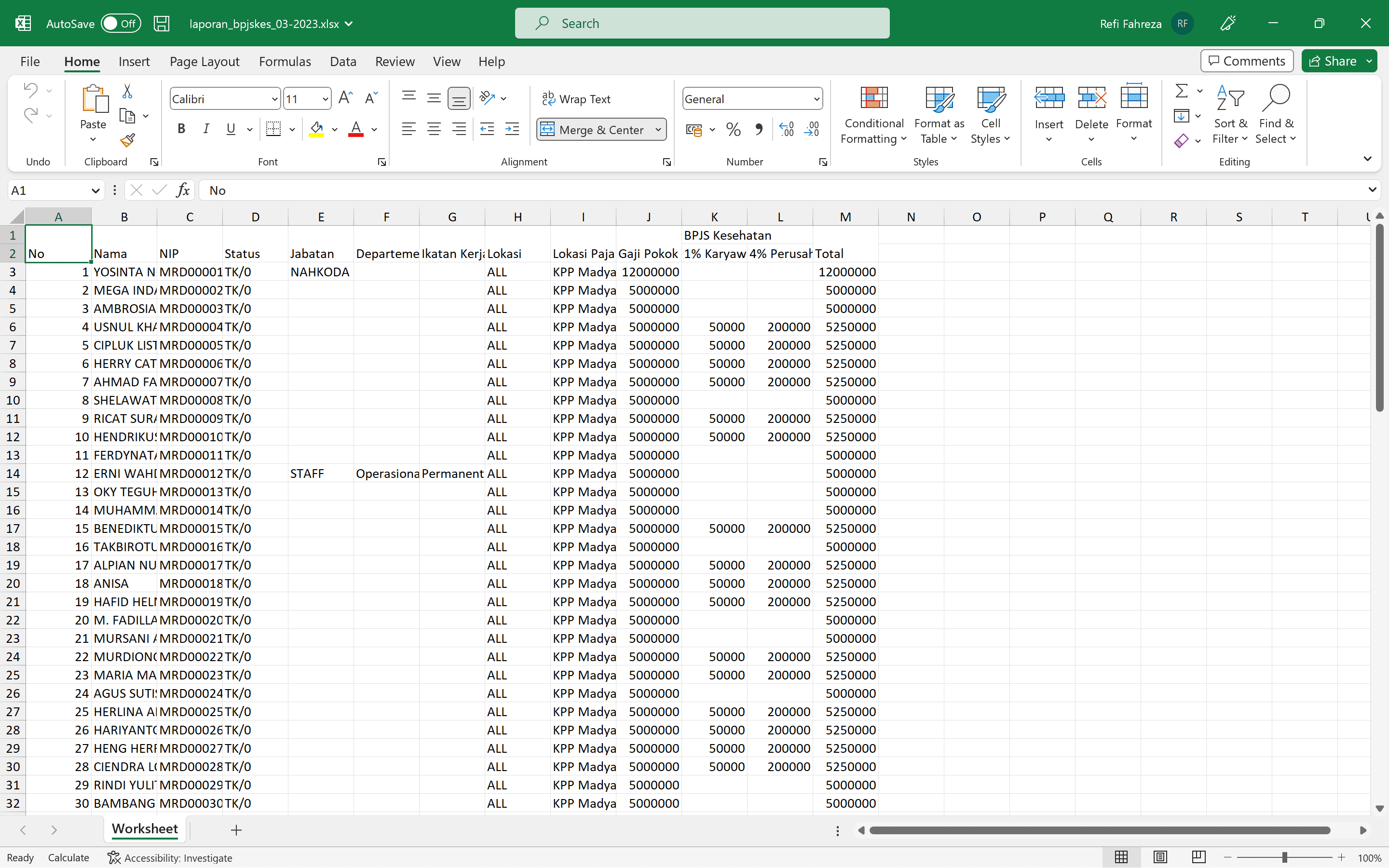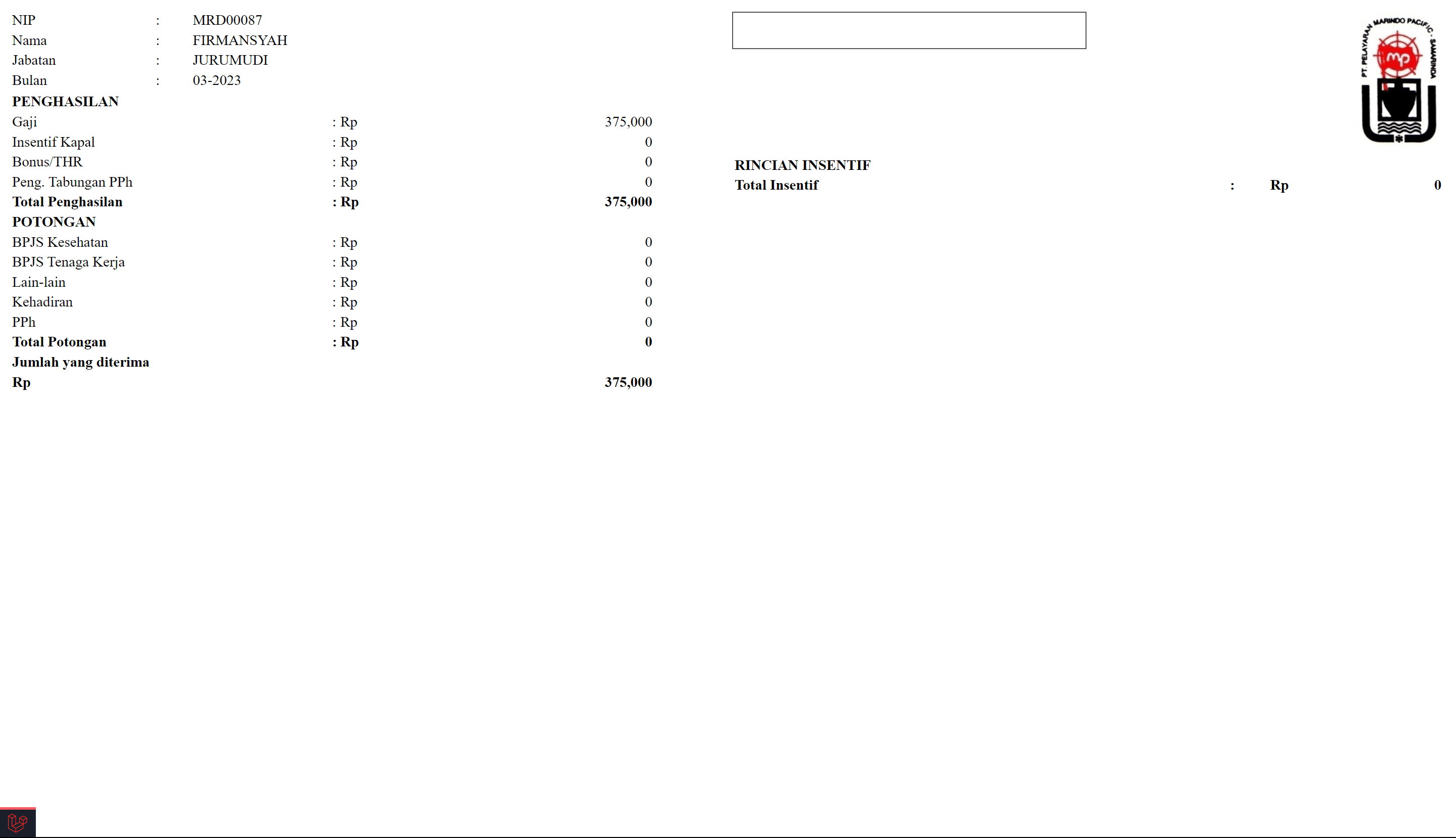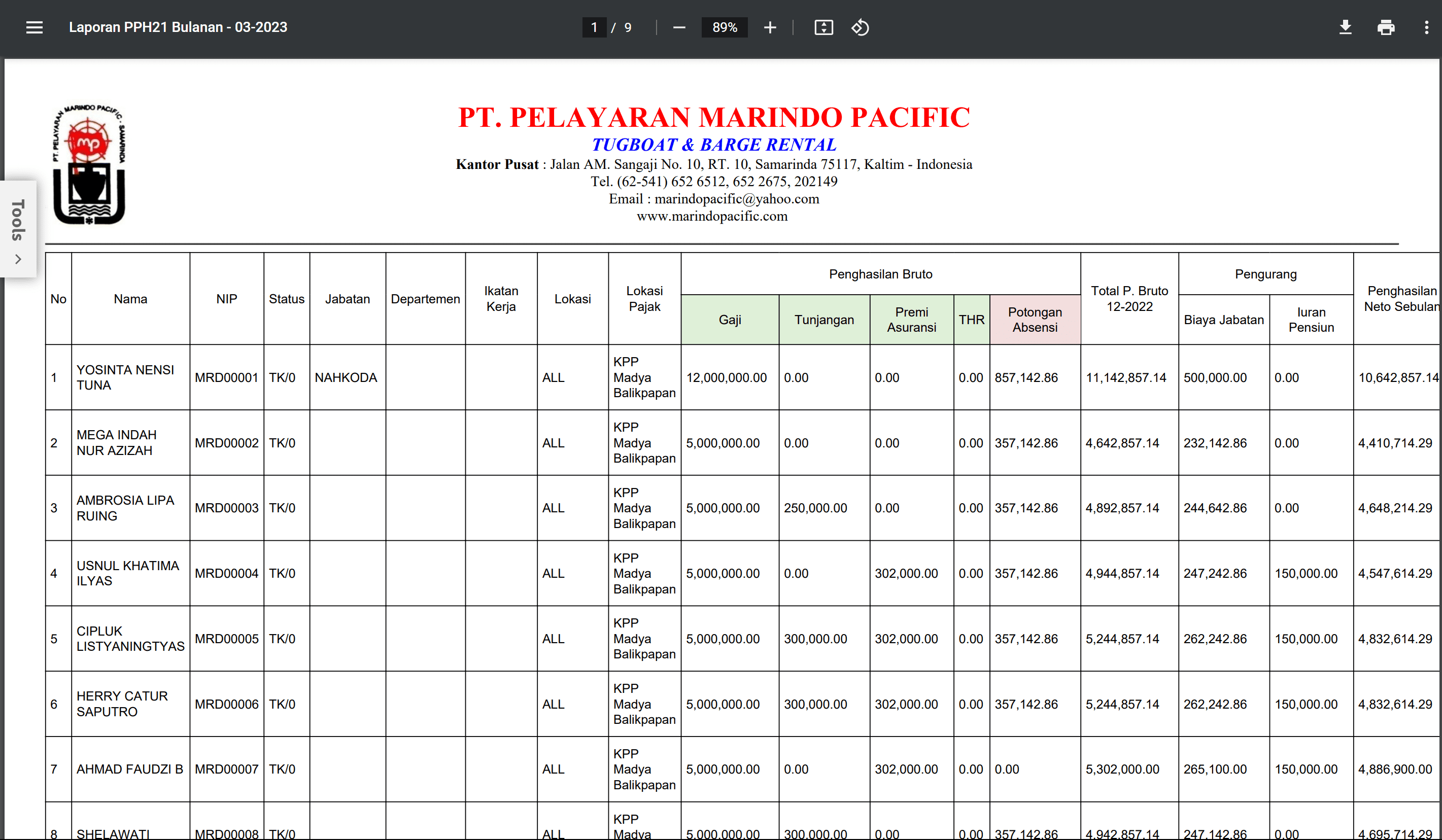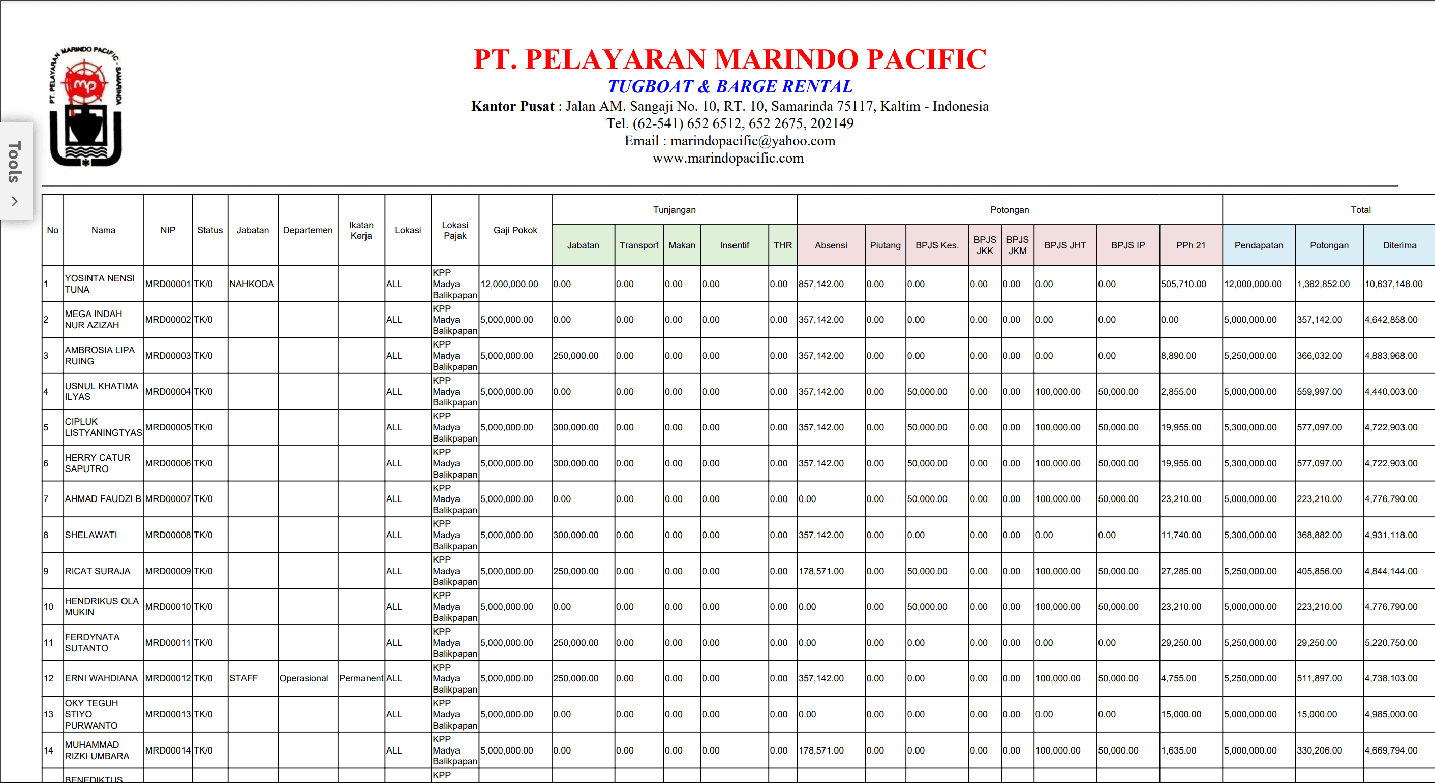Keseluruhan data laporan dari gaji, bpjs, serta ppn 21