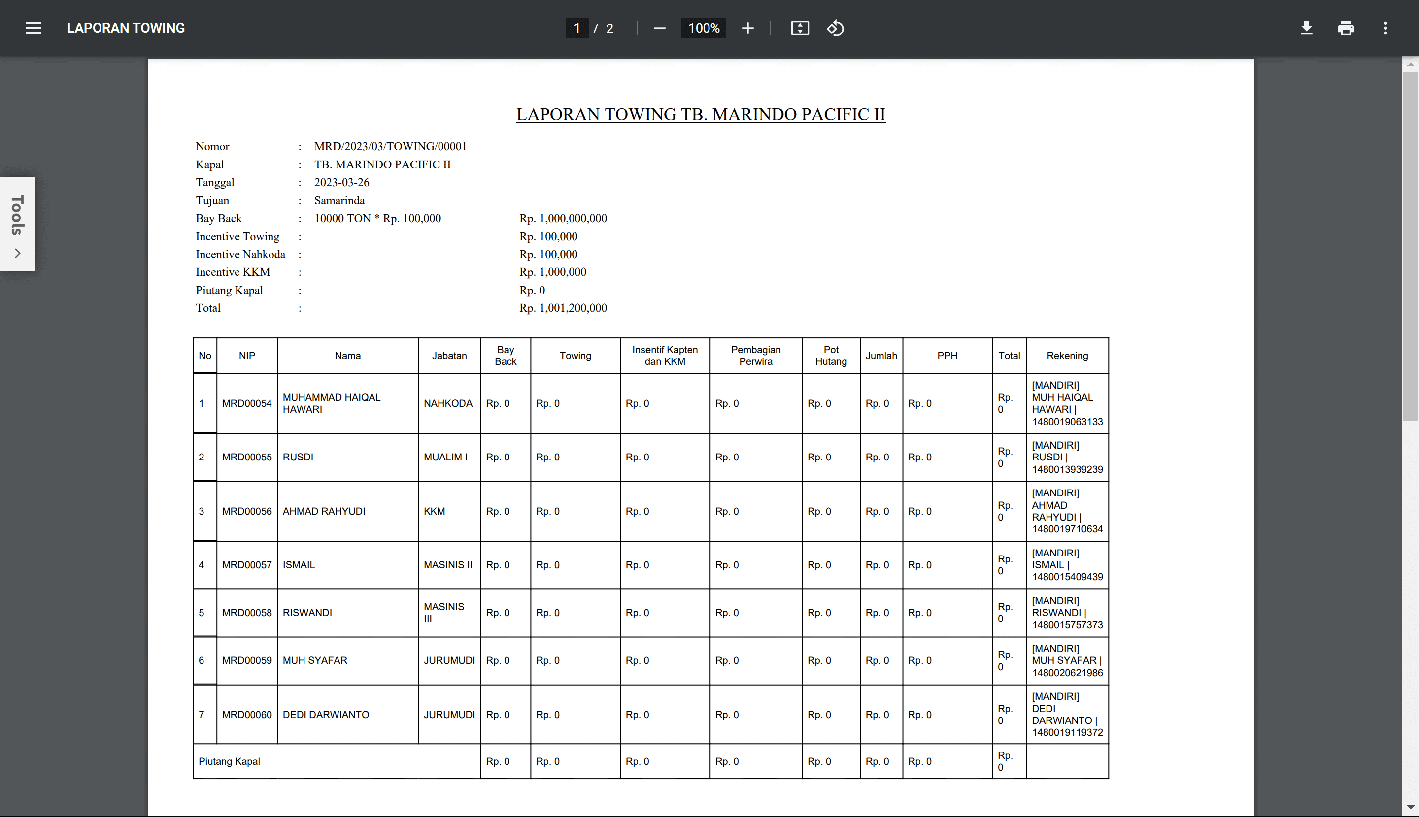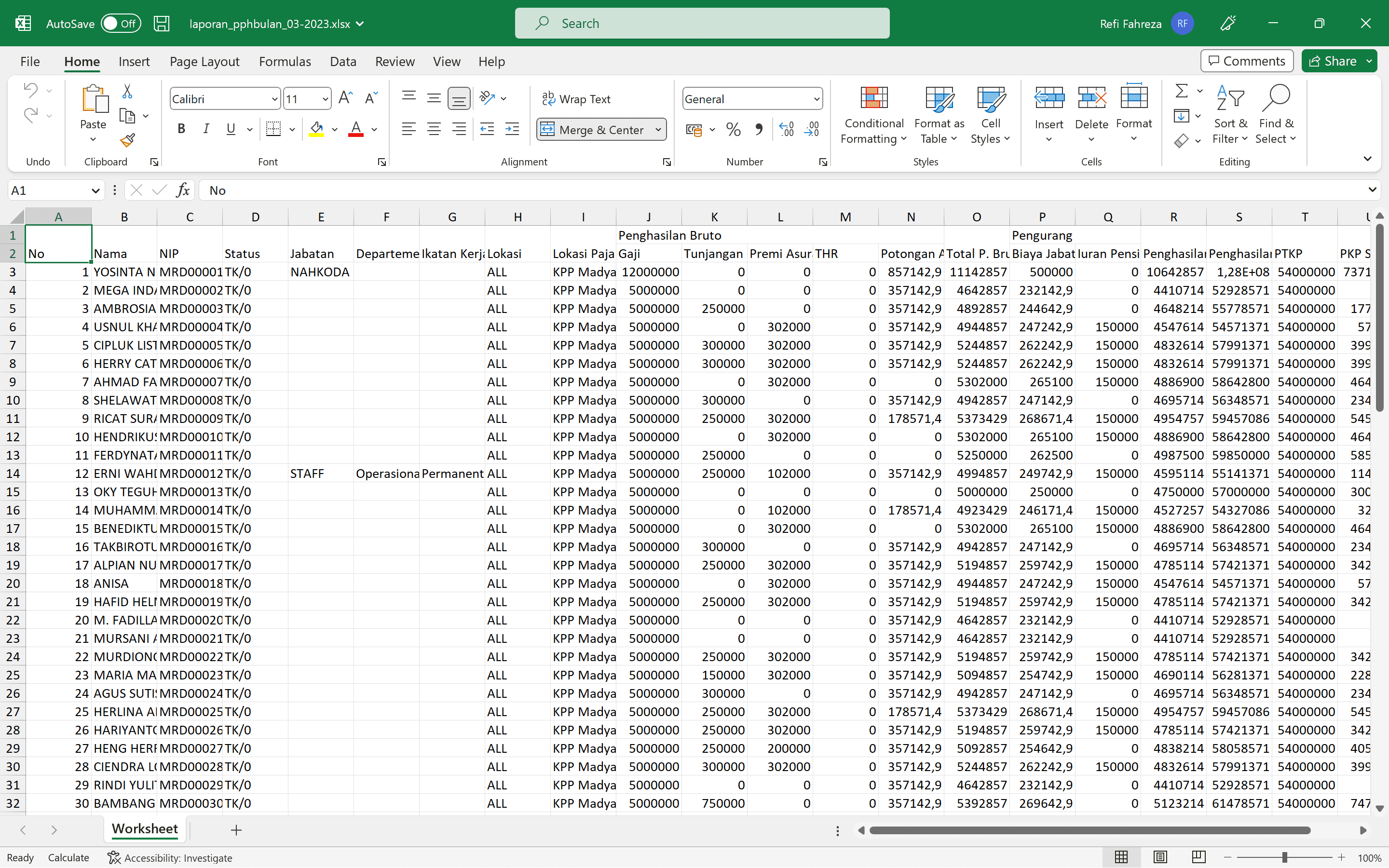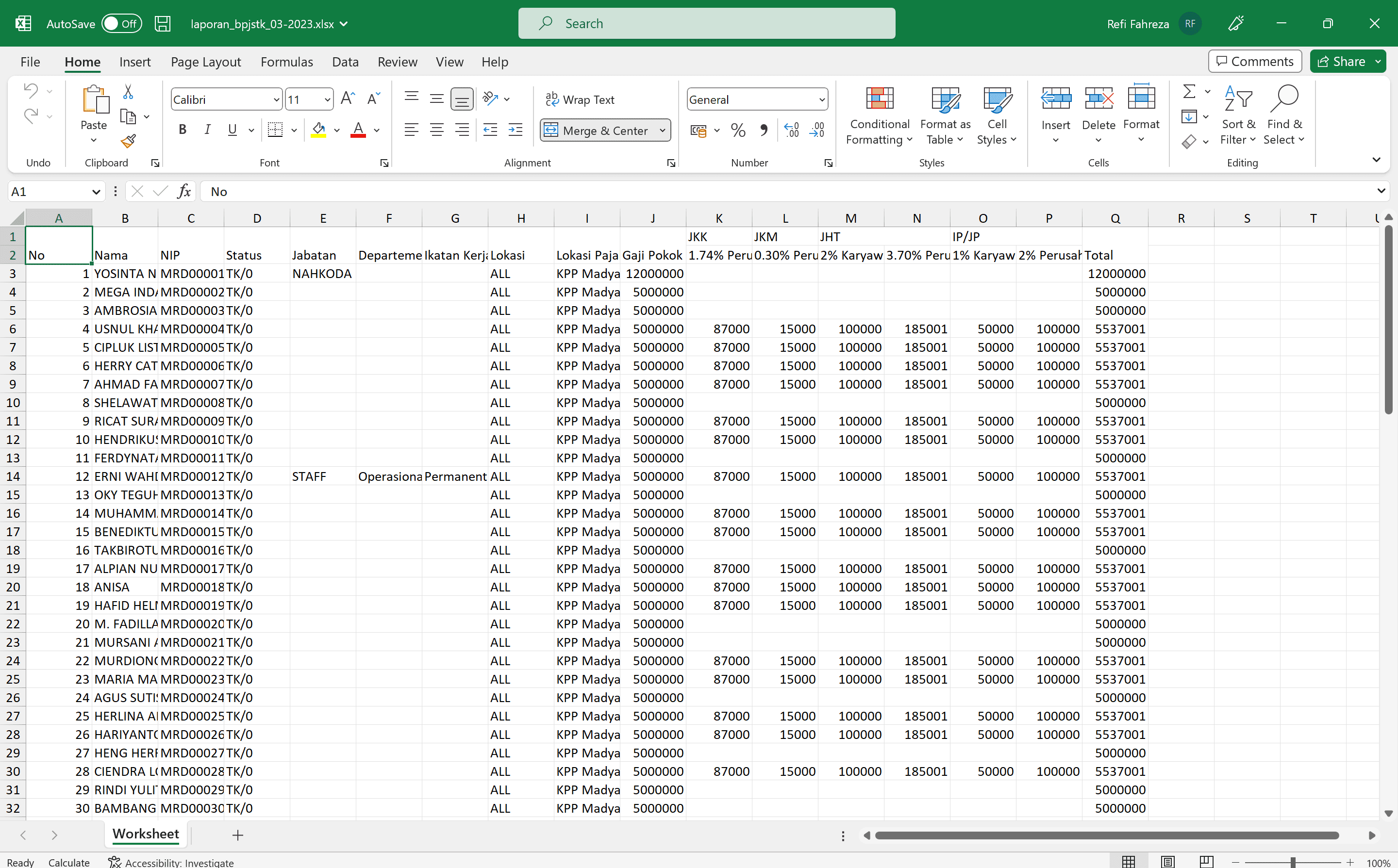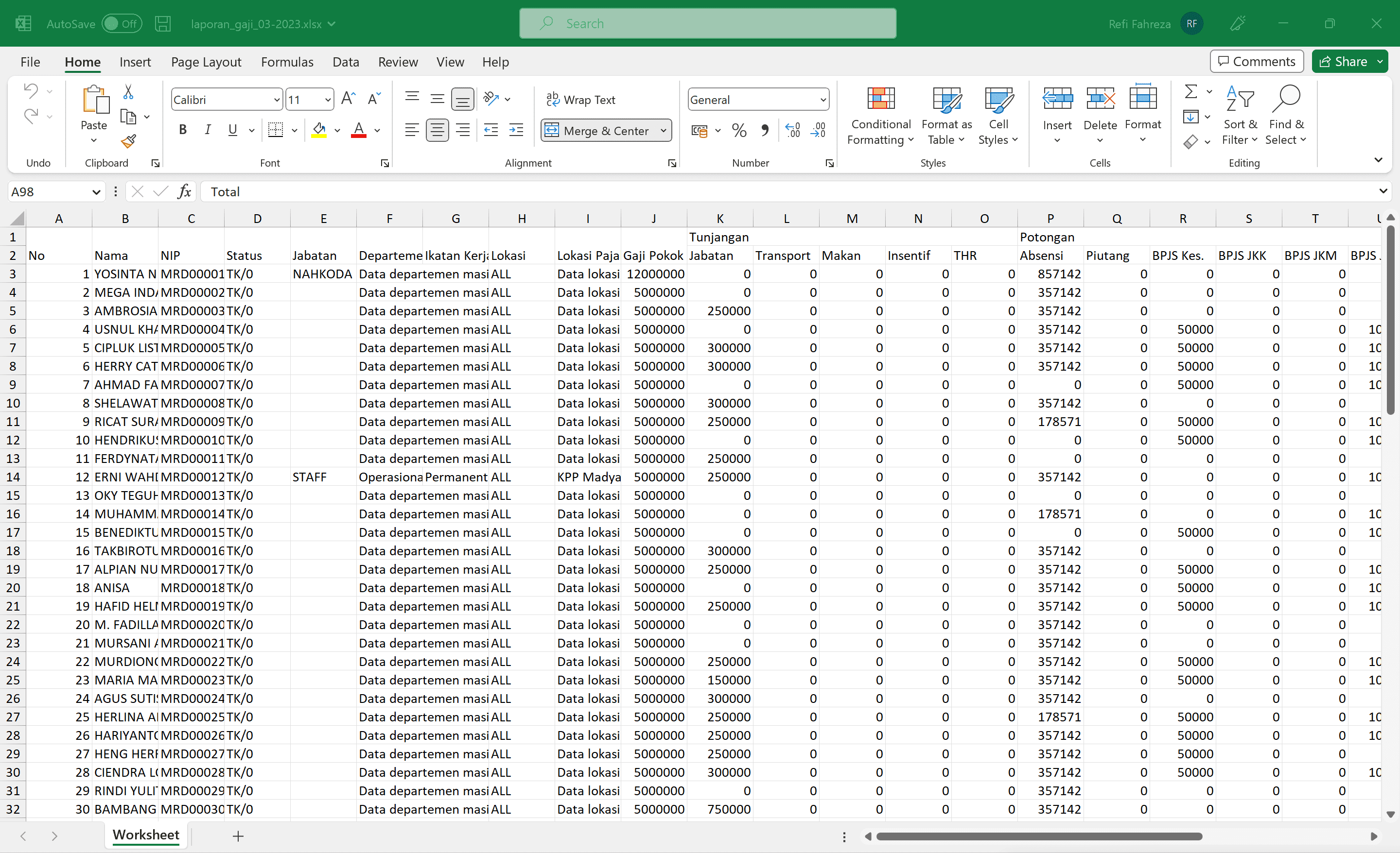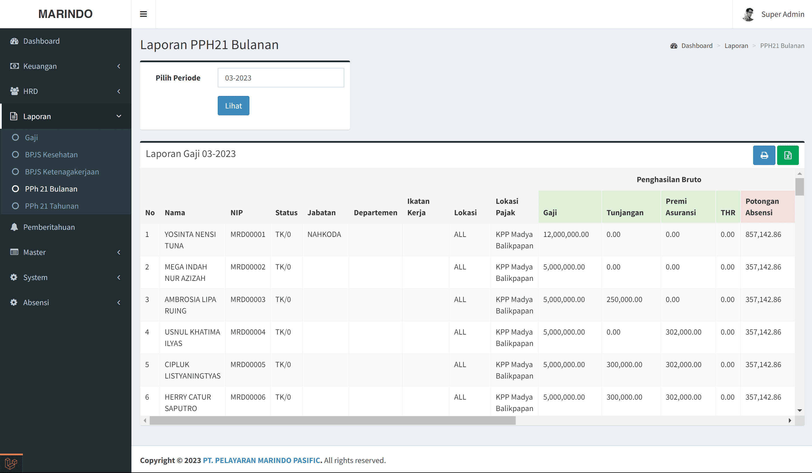 Keseluruhan data laporan dari gaji, bpjs, serta ppn 21